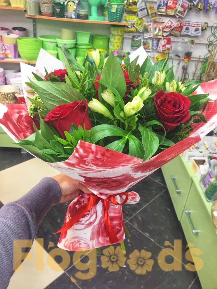 Букет «Летний вечер» состоит из роз и альстромерий. Для его создания использую розы Российского производства высотой 60 см.